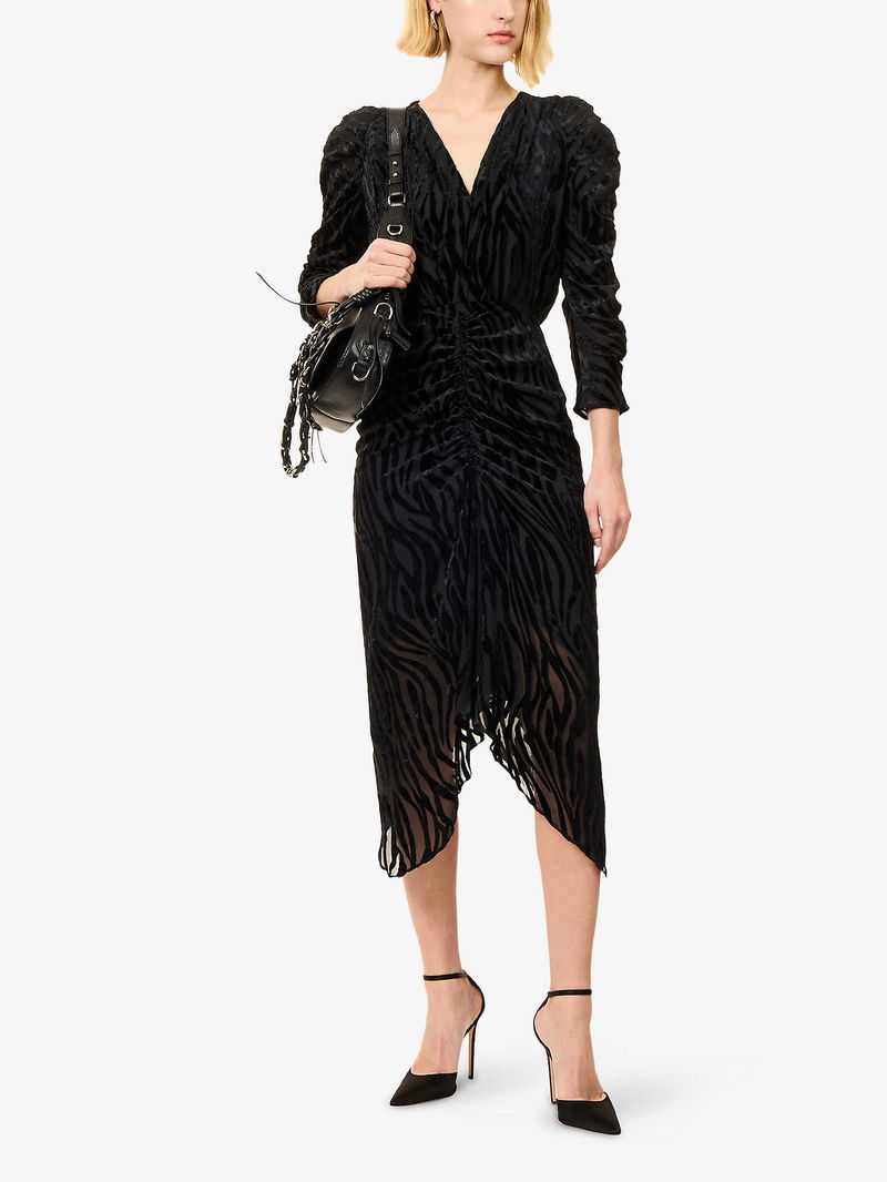 Isabel Marant woven midi dress. - Regular fit, V-neckline, three-quarter sleeves, burnout pattern, lined.