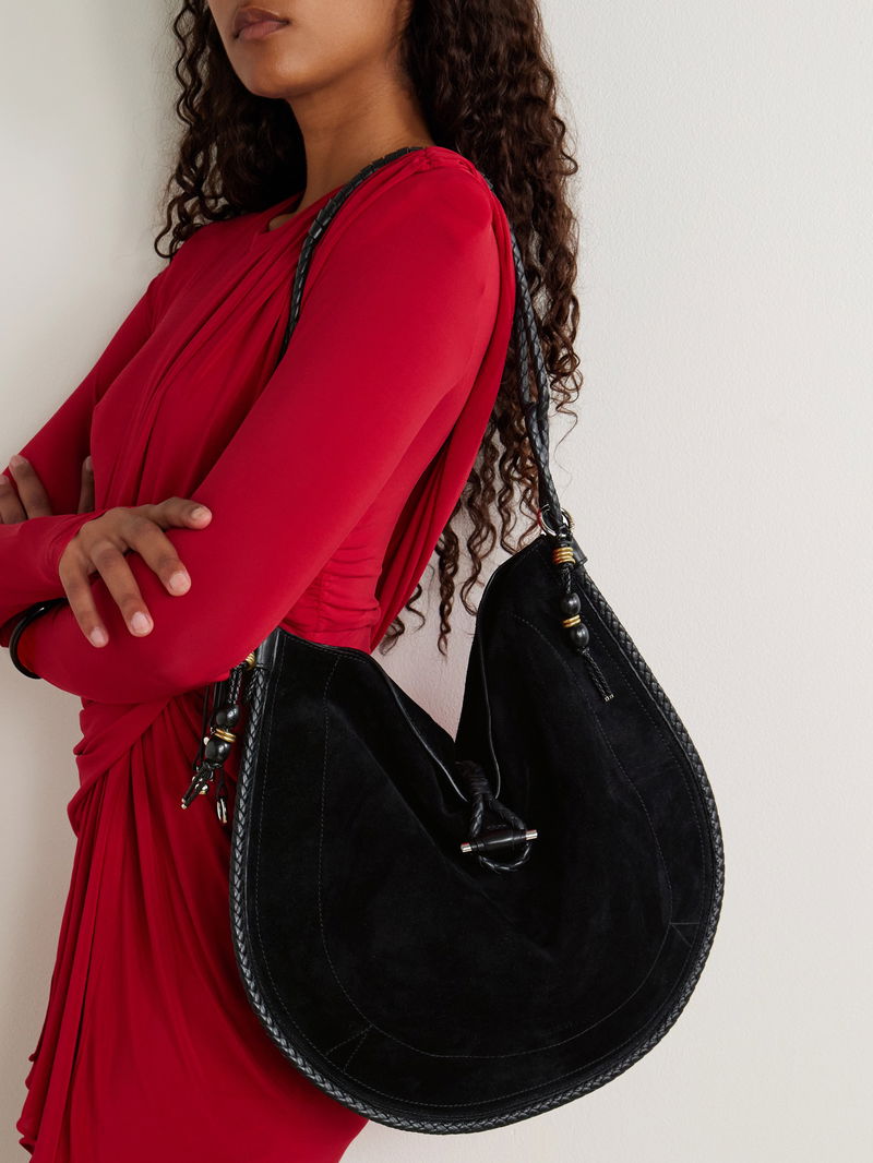Oskan Embellished Leather-trimmed Suede Shoulder Bag