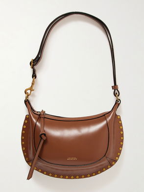 Isabel Marant's 'Oskan Moon' bag is perfect for carrying everyday necessities. Crafted from black croc-effect patent-leather, it has a curved shape that's outlined with silver-tone studs and is stamped with a matching foiled logo. Inside, there are two pockets to keep your belongings organized and secure.