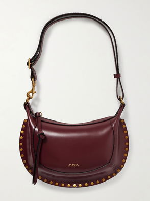 Isabel Marant's 'Oskan Moon' bag is perfect for carrying everyday necessities. Crafted from burgundy leather, it has a curved shape that's outlined with gold-tone studs and is stamped with a matching foiled logo. Inside, there are two pockets to keep your belongings organized and secure.
