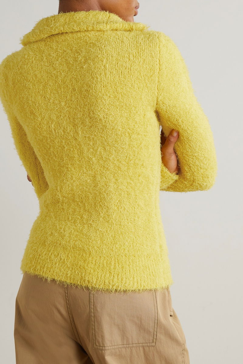 Equally bold in texture and color, Isabel Marant’s ‘Pamina’ cardigan is made from vibrant yellow cotton-blend with a tactile, brushed finish. It has a slim fit with ribbed trims and a two-way zipper so you can play with the shape. Wear it solo or underpinned with a T-shirt.