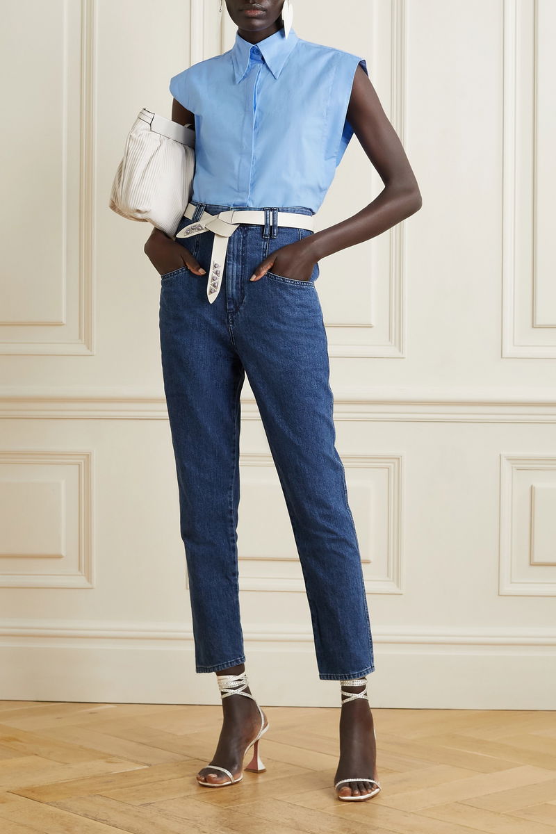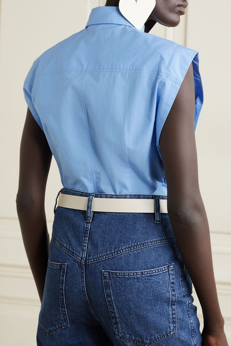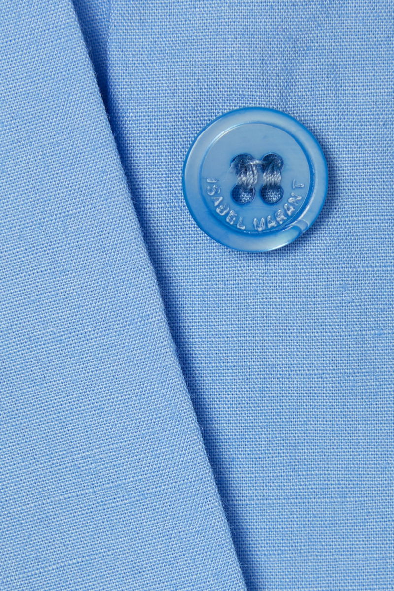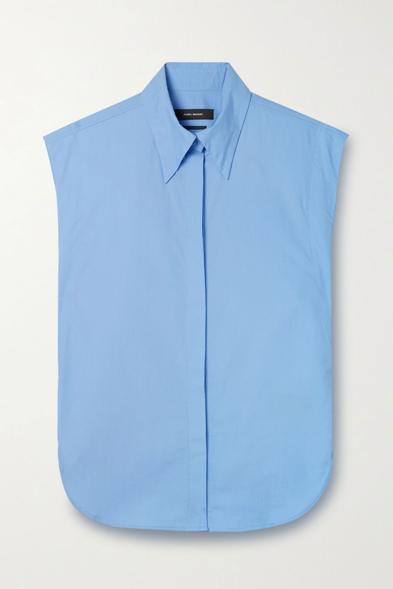 Isabel Marant's 'Renzae' shirt is designed in a sleeveless silhouette with angular shoulders that mimic cut-off styles. It's made from a lightweight and breathable cotton and linen-blend with organic fibers and fits slightly loose through the bodice. Button it all the way up to create a neat look through the exaggerated collar.