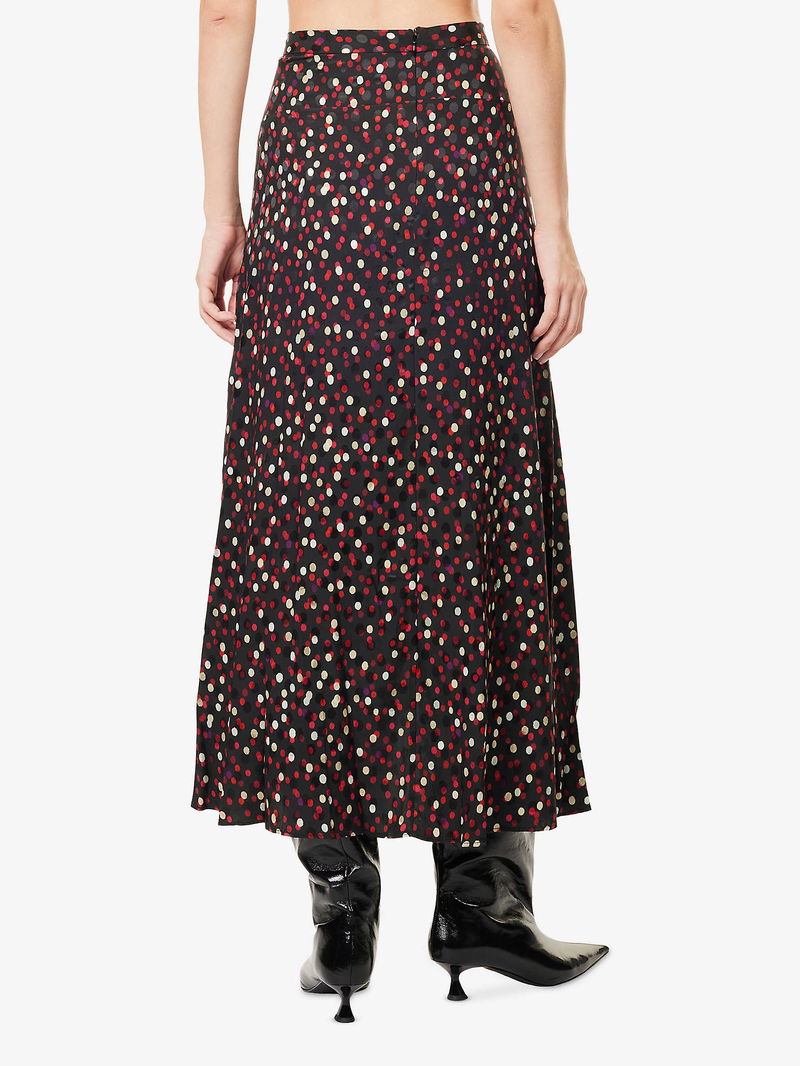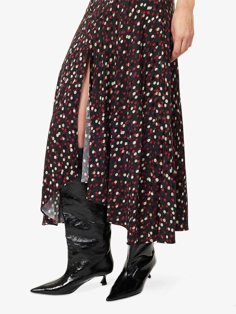 Sakura Polka-Dot Silk-Blend Midi Skirt
