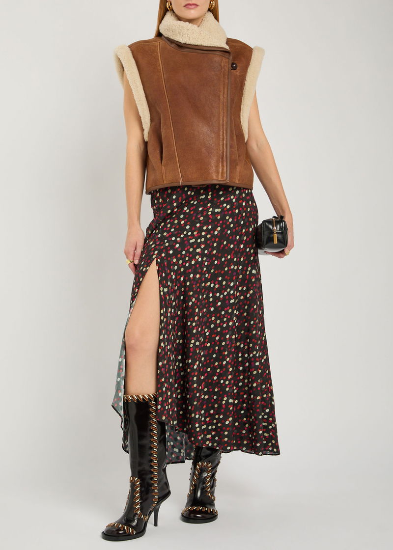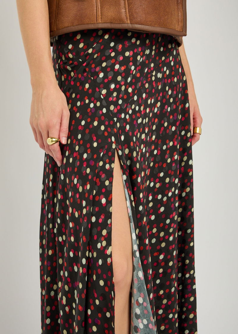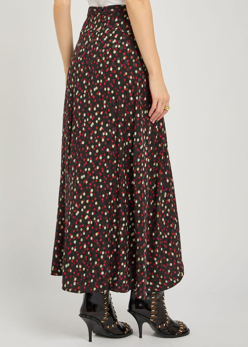 Isabel Marant stretch-silk skirt. Polka dots, side split at asymmetric hem. Concealed zip fastening at back.