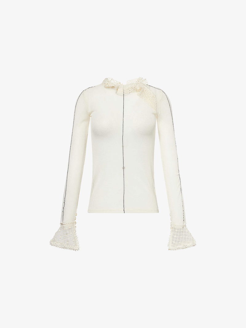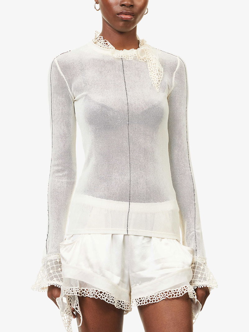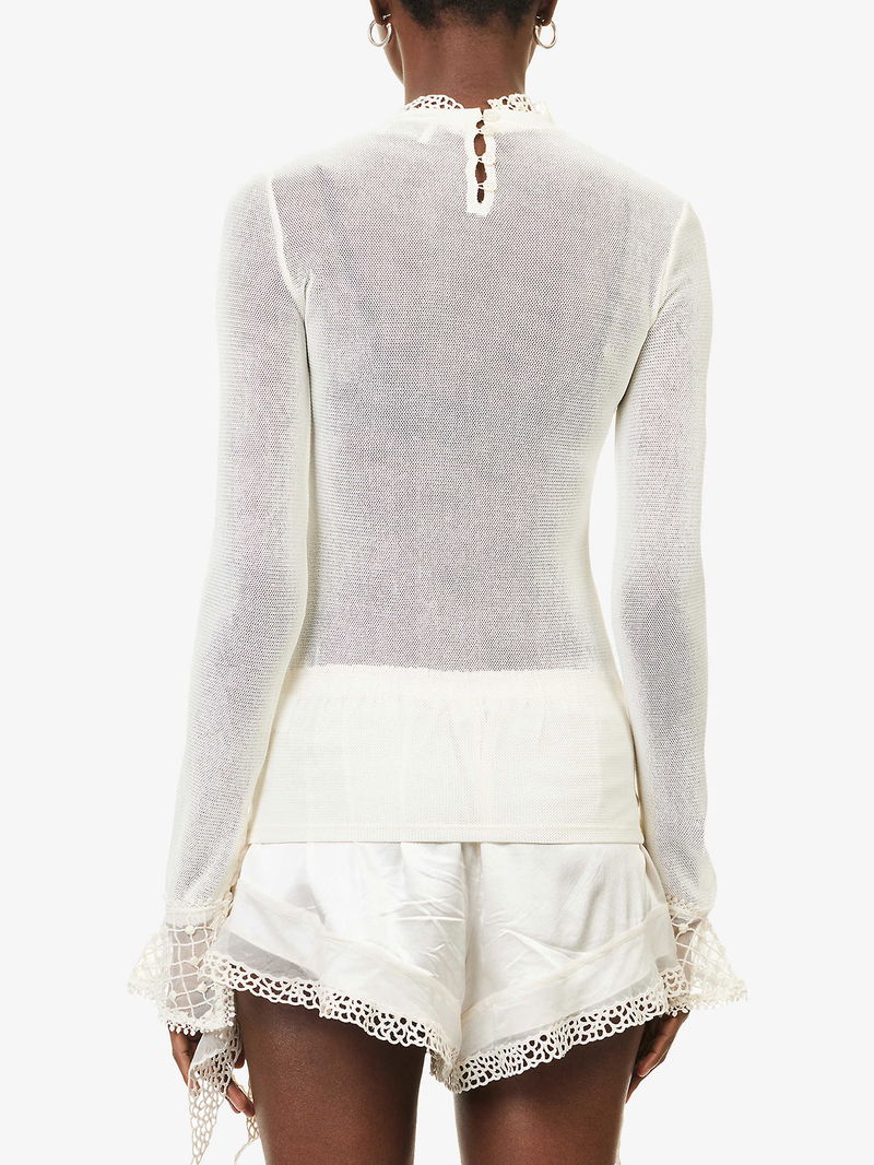 Sarah Long-Sleeve Mesh-Knit Top