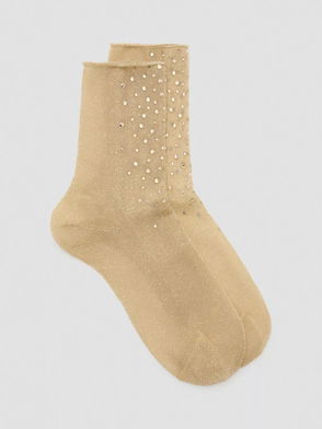 Calf-high stretch cotton- and nylon-blend jersey socks in white. · Intarsia logo in black · Rib knit cuffs.