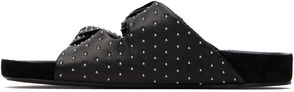 Calfskin suede flat sandals in taupe.· Eyelets throughout· Open toe· Pin-buckle straps at vamp· Logo embossed at molded calfskin footbed· Treaded EVA foam rubber sole.