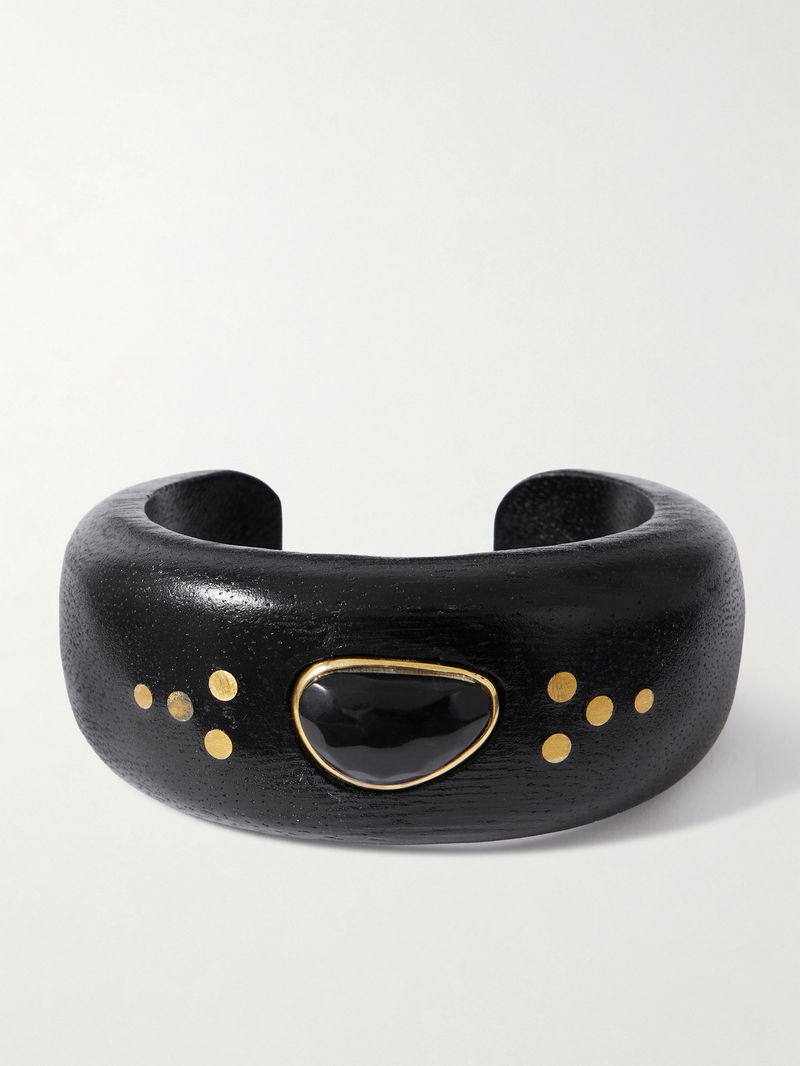 Isabel Marant's 'Layla' cuff leans into the label's Western-inspired charm. Made from wood, it’s detailed with gold-tone accents and centered by a faceted buffalo bone cabochon.