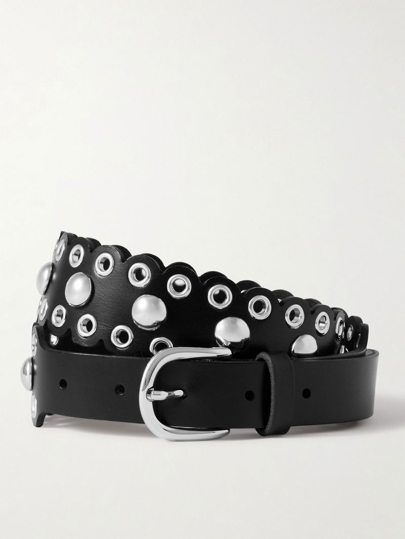 Isabel Marant's 'Zalla' belt brings a Parisian attitude to everyday dressing. Made from smooth black leather, it's punctuated with polished silver-tone studs and eyelets and has scalloped edges. Cinch yours over relaxed blazers or dresses.