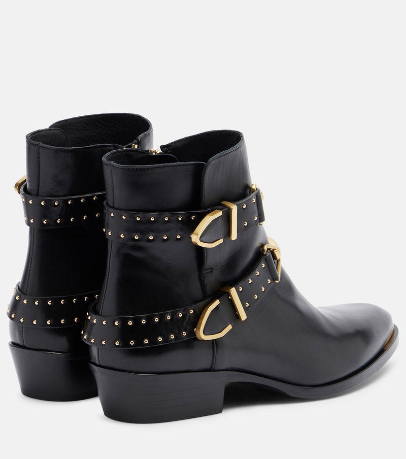Inspired by Parisian style, each Isabel Marant piece blends refined design with effortless looks for daily life. Made from black leather, the Zalya ankle boots feature pointed-toe silhouettes, block heels, and golden accents.