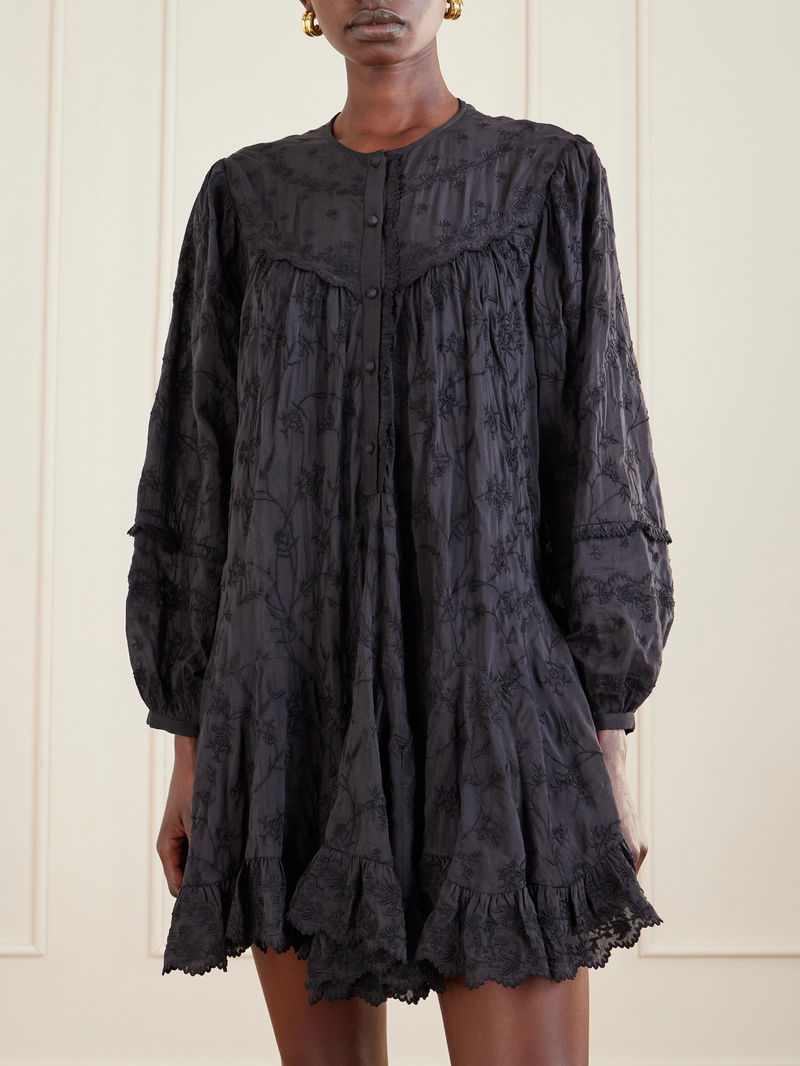 Light and romantic, Isabel Marant's 'Zame' dress is made from cotton and silk-blend embroidered with dainty florals. The relaxed silhouette is defined by gentle ruffles and a billowing mini skirt. It's an effortless choice and endlessly versatile.