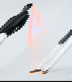 Rectangular brushed knit cashmere scarf in navy. · Raw edge at ends·