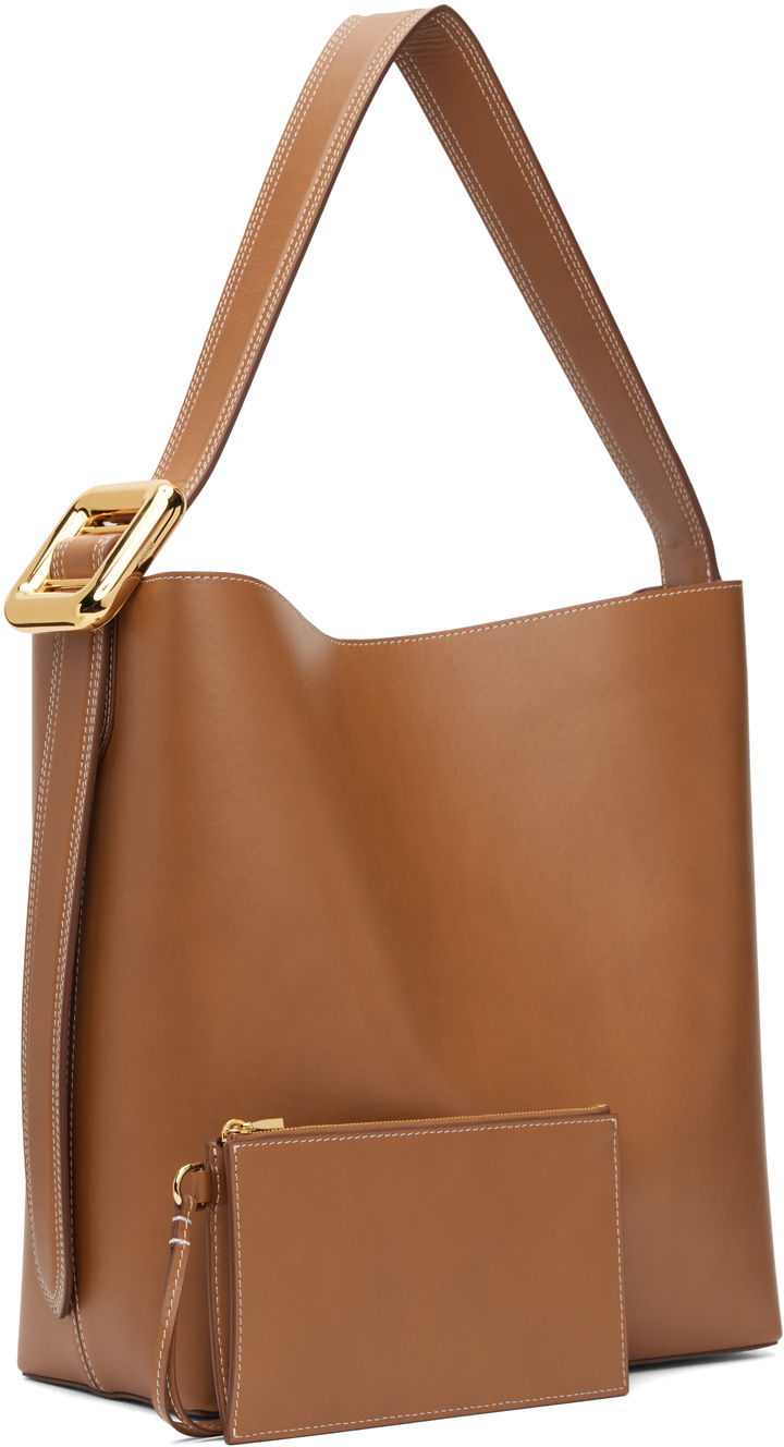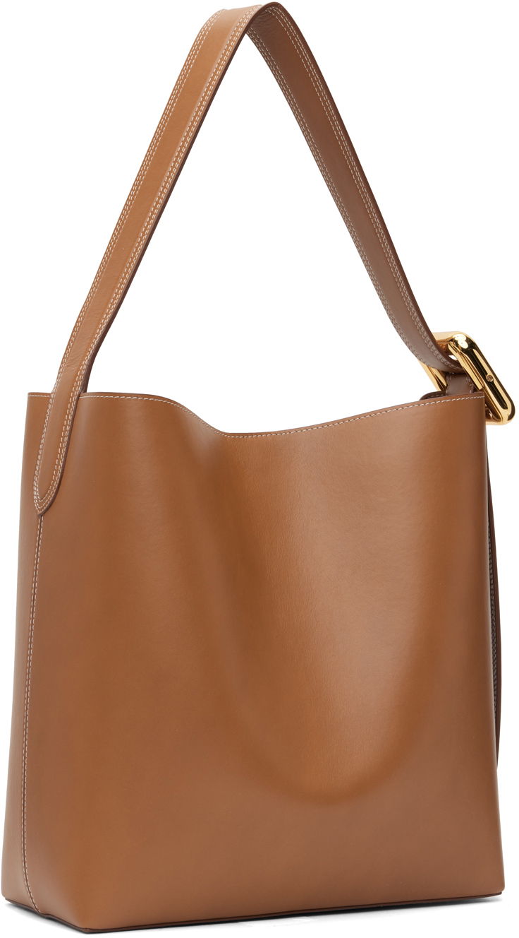 Structured buffed leather messenger bag in brown. Logo hardware at face.