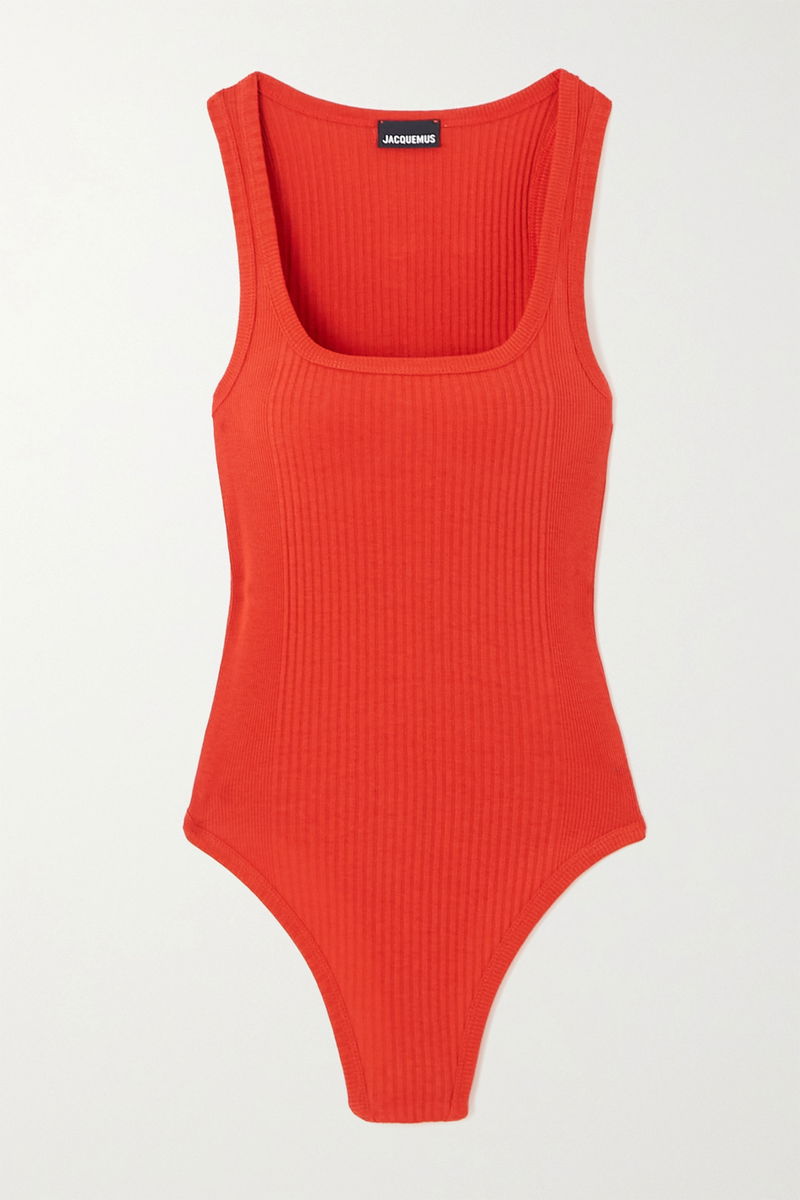 Jacquemus' ribbed thong bodysuit is part of the buzzy French brand's 'Le Chouchou' collection. Made from soft cotton, it has a scoop neckline and grosgrain logo tag at the back.