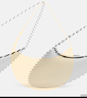 Miniature accessories are seen throughout Jacquemus’ runway shows and this small green Carinu shoulder bag captures the compact look. It’s crafted from smooth leather with a black cardholder panel on the detachable wide strap and hallmarked with a signature gold logo.