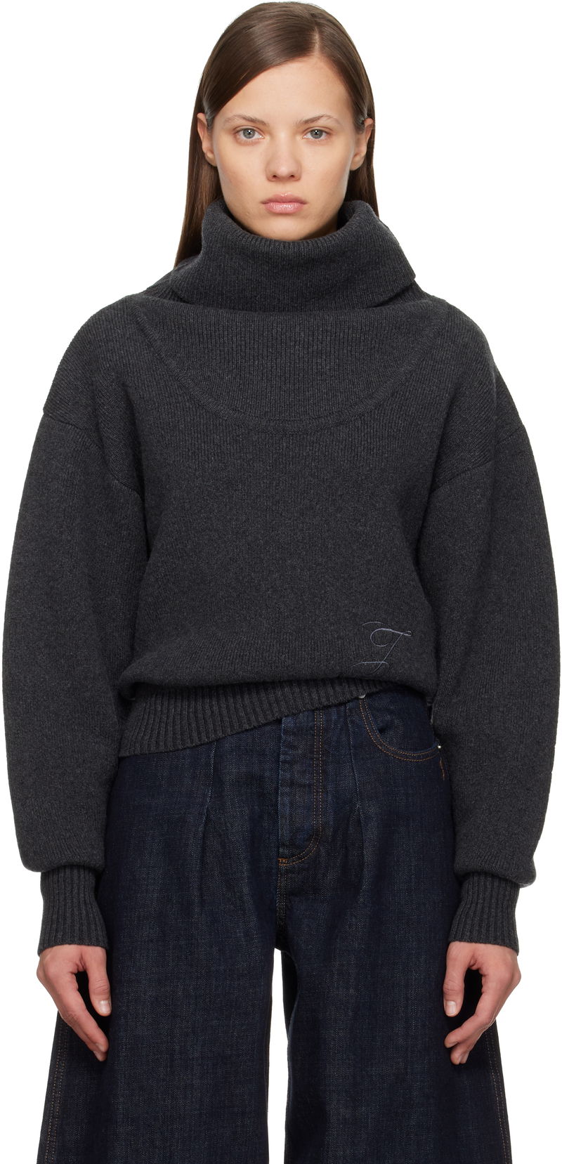 Heavyweight knit virgin wool- and cashmere-blend sweater.