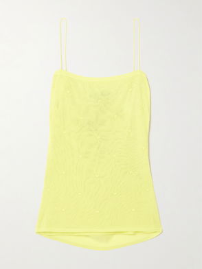 Jacquemus' tank is finely knitted for a sheer finish. In a pastel-pink shade with a contrasting hem, it has a deep V-neckline that's mirrored at the back and is appliquéd with the label's 'Fisherman' logo patch. Adjust the slim straps to your preferred fit.