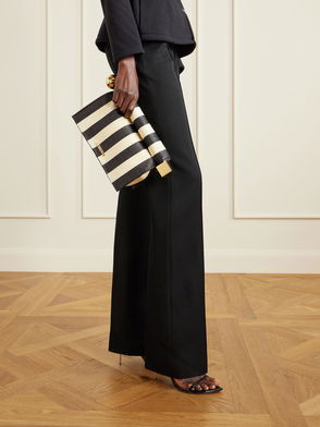 Vinyl clutch in gold tone.· Stowaway cable-chain crossbody strap· Gold-tone logo hardware at face· Logo-engraved graphic wood hardware at sides· Patch pocket at back face· Magnetic roll-top· Card slot at interior· Twill lining. Part of the La Casa collection.