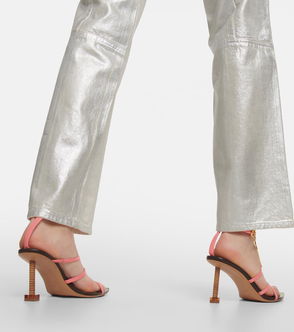 Polished calfskin heeled sandals in black.· Open toe· Pin-buckle ankle strap· Logo embossed at padded footbed· Covered sculptural stiletto heel with rubber injection · Calfskin sole. Part of the La Casa collection.