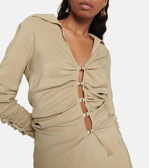 Lingerie details and strategic flashes of skin? It can only be the work of Simon Porte Jacquemus. A fresh style for the new Le Papier collection, the Le Chemise Machou is just what we expect from the famous French designer. Firstly, it’s topped with an open neck and finishes on a midriff-baring hem – two signs of his familiar, well-honed sensuality. Secondly, the harness-like internal drawstring, branded cufflinks and mother-of-pearl buttons all exhibit the attention to detail we know and love.
