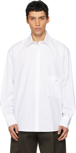 Cotton poplin shirt. Stripes and logo graphic printed throughout. · Spread collar· Press-stud closure · Patch pocket at chest · Shirttail hem · Logo locker loop at back yoke.
