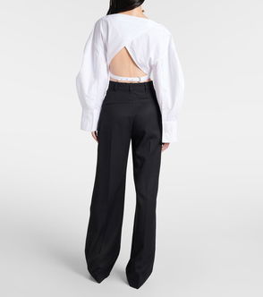 Jacquemus' 'La Chemise Soffio' top is defined by hook fastenings through the front that create skin-baring cutouts. It's made from midnight-blue stretch-jersey and ruched to emphasize the slim fit.