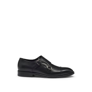 Polished calfskin derbys in brown. · Hand-stitched detailing throughout· Moc toe· Basket-woven detailing at vamp· Lace-up closure· Buffed leather and suede lining · Stacked leather block heel with rubber injection · Leather sole.