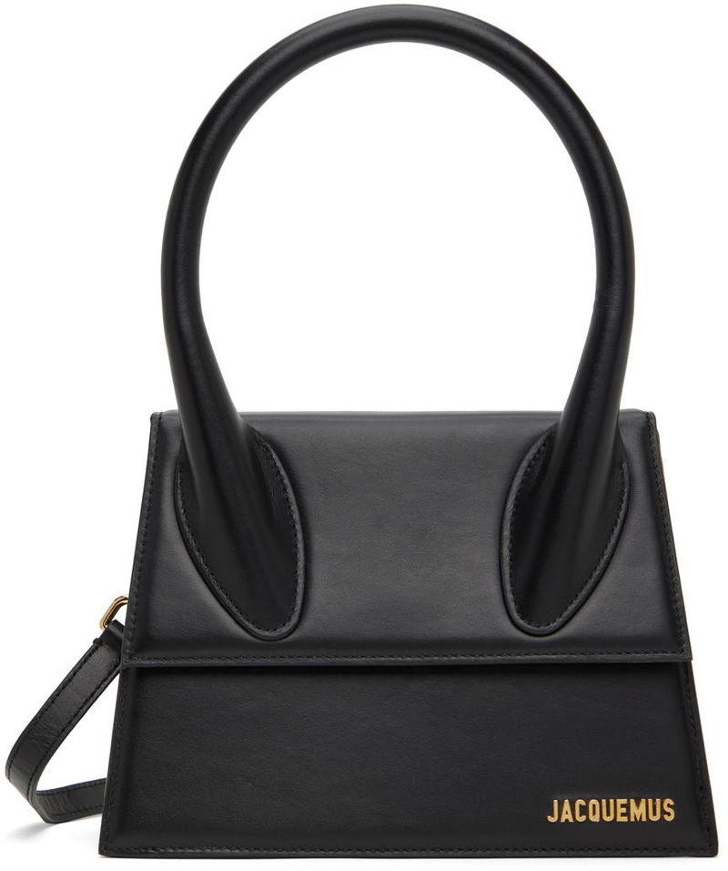 Buffed leather top handle bag in black.· Rolled carry handle· Adjustable and detachable shoulder strap· Logo hardware at face· Foldover flap· Patch pocket at interior· Twill lining· Logo-engraved gold-tone hardware·