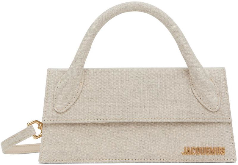 Structured cotton- and linen-blend canvas shoulder bag in beige.· Rolled carry handle· Detachable and adjustable shoulder strap· Gold-tone logo hardware at face· Foldover flap with magnetic press-stud closure· Card slot at interior· Twill lining· Logo-engraved gold-tone hardware. Part of the Le Papier collection.