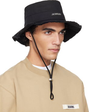 Cotton twill bucket hat in khaki. Logo hardware at face.· Frayed edge at quilted brim· Cord-lock drawstring at back face· Adjustable chin strap· Cotton poplin lining. Part of the Le Raphia collection.