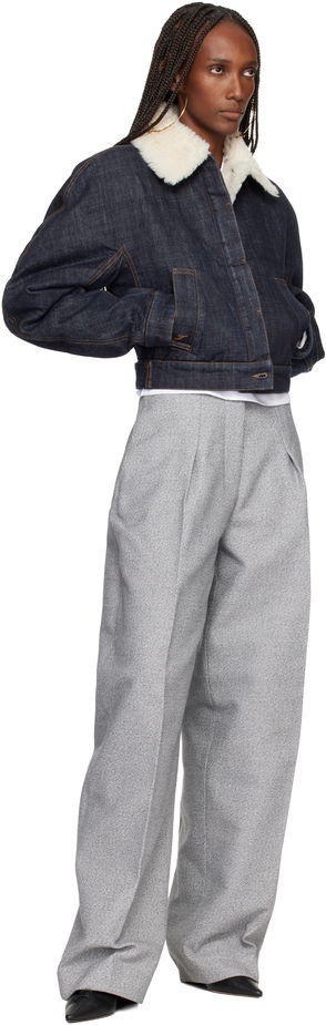 Calf-high paneled non-stretch denim and linen hopsack boots in blue.· Pointed toe· Zip closure at heel counter· Grained lambskin lining· Stacked leather stiletto heel with rubber injection· Leather sole with rubber injection· Heel: H3 in. Part of the Le Raphia collection.