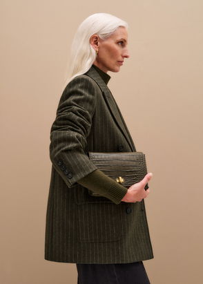 Jacquemus' 'Le Salon' clutch is made from supple croc-effect suede and framed by mixed metal hardware along the top. The elongated shape offers plenty of space for your phone, keys, mints and lipstick or two, while the detachable strap allows you to go hands-free.