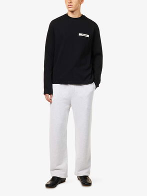 Jacquemus cotton-jersey T-shirt. Pulls on. Regular fit, crewneck, ribbed trim at neck, short sleeves, brand embroidered tab at chest.