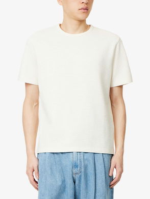 Cotton tricot T-shirt.· Striped rib knit crewneck, hem, and cuffs· Jacquard stripes at front.