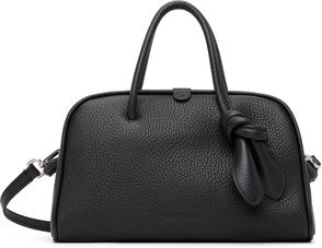 Buffed leather top handle bag in black. · Knotted detailing at carry handle· Twin fixed shoulder straps· Logo hardware at face· Bumper studs at base· Press-stud closure· Card slot at interior · Zip pocket· Cotton twill lining· Gold-tone hardware. Part of the Les Classiques collection.