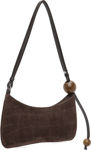 Buffed leather shoulder bag in brown.· Beads at adjustable shoulder strap· Logo hardware at face· Zip closure· Card slot at interior· Cotton twill lining· Logo-engraved gold-tone hardware·