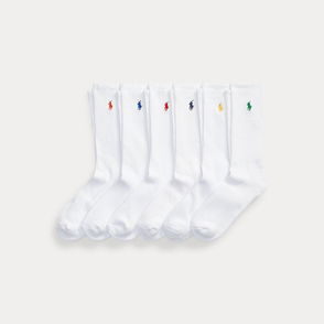 Pair of mid-calf knit stretch organic cotton-blend socks in white. Jacquard logo at rib-knit cuffs.
