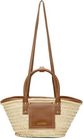 Handcrafted braided leaf palm and buffed leather tote in beige and brown.· Press-stud tab at twin rolled carry handles· Fixed shoulder straps· Patch pocket and logo hardware at face· Lanyard-clasp fastening at open throat· Unlined· Gold-tone hardware· Contrast stitching in white·