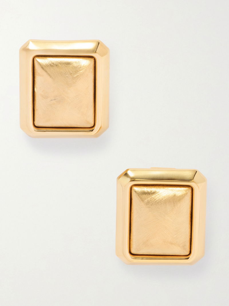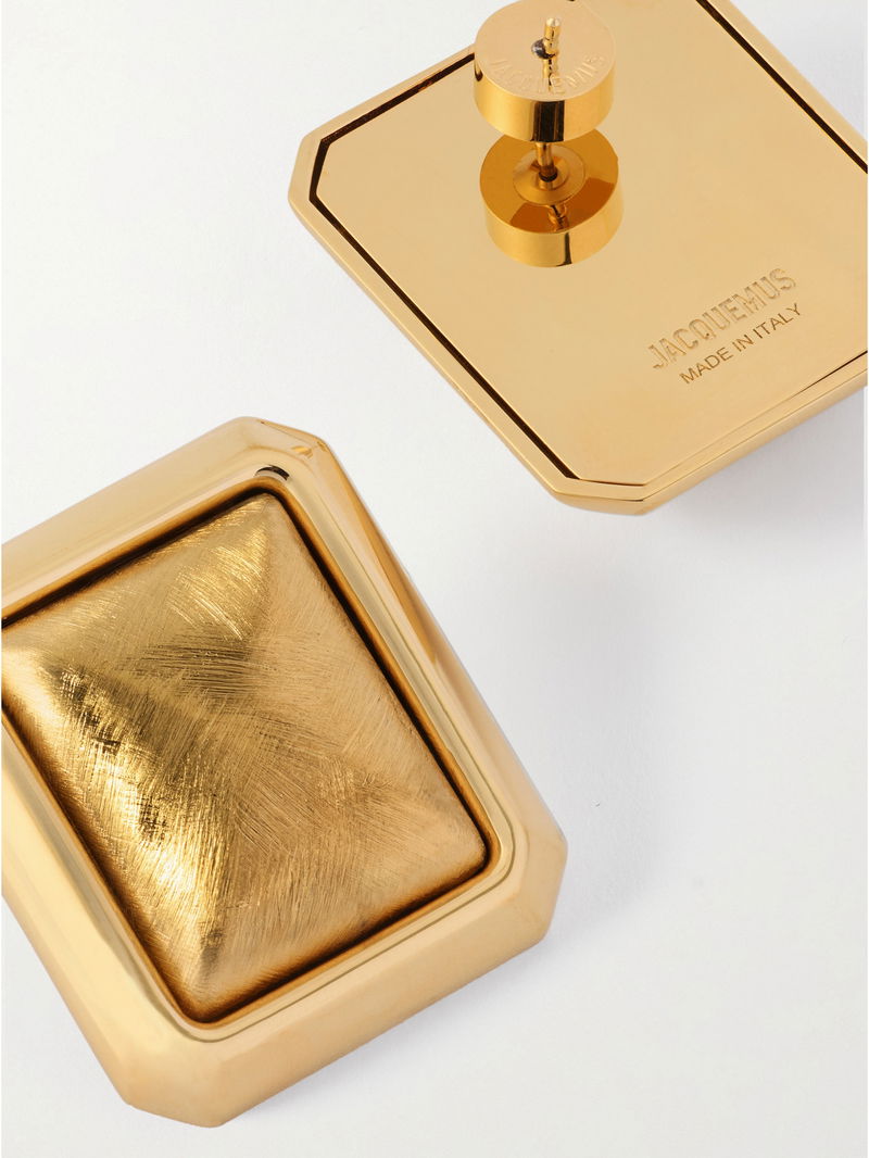 Jacqumus' 'Les Pendants Carré' earrings have an oversized, geometric shape reminiscent of statement pieces of the '80s. Crafted in Italy from gold-tone metal, they’re brushed to create a vintage feel and are subtly debossed with the label's logo at the back. Why not style yours with a power blazer.