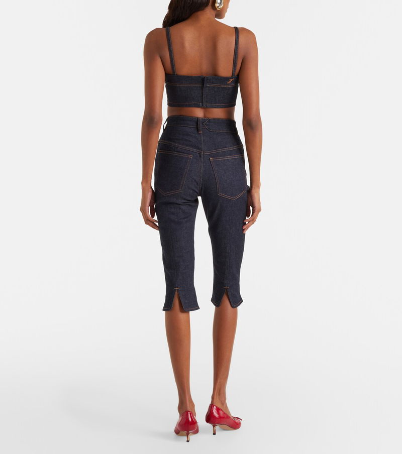 Jacquemus brings a characterful vision of French fashion to the design of every new collection. Made from cotton and cashmere denim, these classic capri jeans are finished with contrast top stitching and logo embroidery on the front.