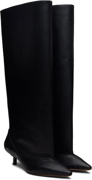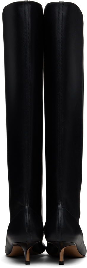 A leading style from Jacquemus’s AW19 collection, these burgundy leather over-the-knee Sabots boots were presented on the AW19 runway which emulated a colourful South of France town square. They sit on a chunky tan wooden sole and robust block heel which are accented by antiqued gold-tone metal studs. Style them to bring a rich tone to muted separates.
