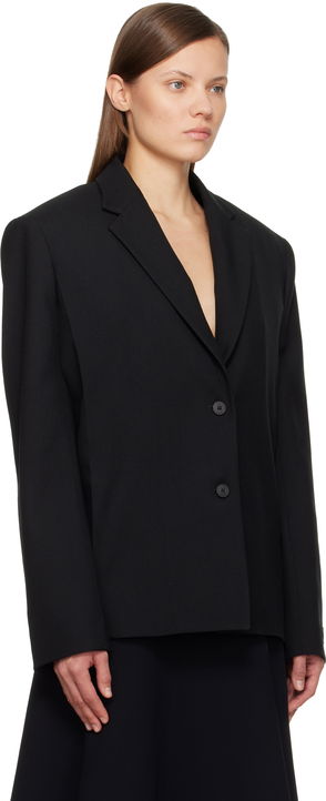 Playful proportions and intricate strapping are key motifs throughout Simon Porte Jacquemus' latest collection, and this black Soco blazer was first seen on the runway in a brown colourway. It's crafted from smooth wool twill with extended shoulders for an oversized silhouette that's cinched at the waist by an interlacing belt that connects the front flap pockets.
