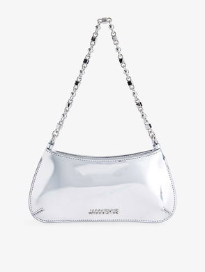 Buffed leather shoulder bag in black.· Adjustable shoulder strap· Logo hardware at face· Patch pocket at face and back face· Carry handle at zip closure· Card slot at interior· Cotton twill lining· Logo-engraved silver-tone hardware·