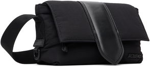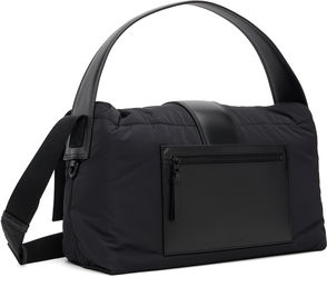 Buffed leather messenger bag in black.· Adjustable shoulder strap· Logo hardware at face· Patch pocket at face and back face· Carry handle at zip closure· Card slot at interior· Cotton twill lining· Logo-engraved silver-tone hardware·
