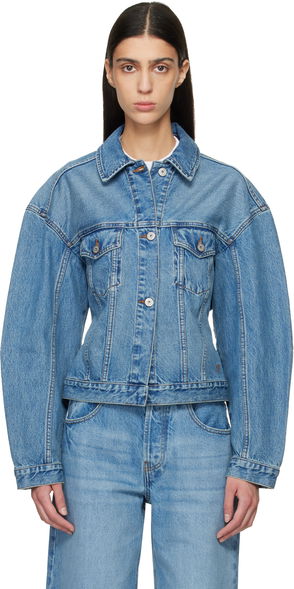 Reimagining classic aviation style, Jacquemus' 'The Ovalo' jacket is made from raw indigo denim with contrast stitching. Cut in a straight fit, it has a cozy plush collar and lining, sculptural rounded sleeves and welt pockets embroidered with a signature 'J' moniker. Adjust the waist tabs to define the shape.