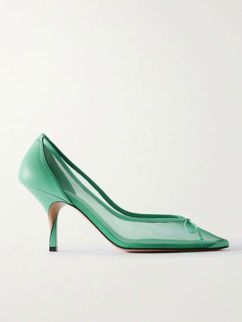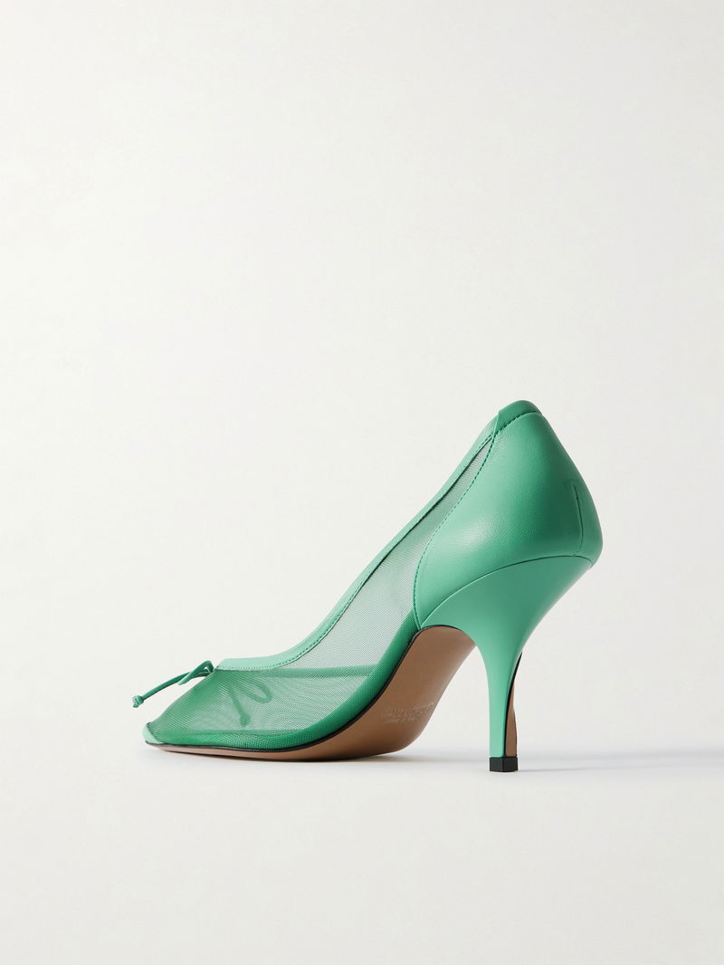 Jacquemus' 'The Tourni' pumps offer a contemporary take on classic styles. Made from green semi-sheer mesh, they're reinforced with leather and have sleek pointed toes and lacquered 90mm heels. The slim bows are so pretty.