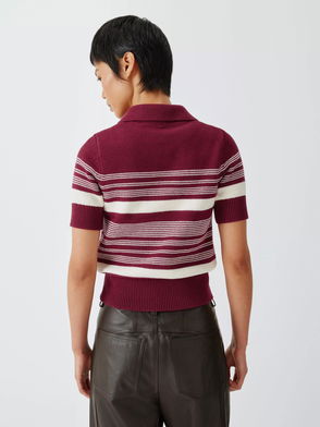 Knit wool-blend polo. Cable-knit detailing throughout.· Rib-knit spread collar, crewneck, hem, and cuffs· Embroidered logo at chest· Stripe at hem and cuffs.