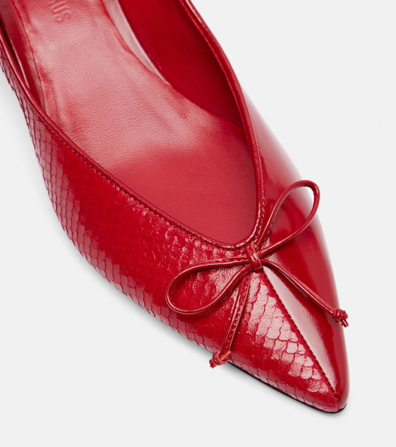 Jacquemus brings a characterful vision of French fashion to the design of every new collection. The Tourni pumps are crafted from half snake-effect, half brushed leather, have bow details on the vamps, and are set atop heels with twisted detailing.