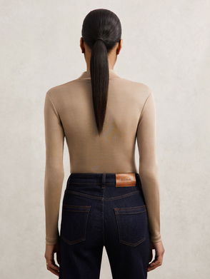 Jacquemus’s camel Valensole bra top appeared in the third look of the AW20 runway, which saw a tailoring and jersey-centric collection in soft neutral tones. It’s knitted from a lightweight mohair blend with a touch of wool and shaped to a pared-back construction with a V-neck.