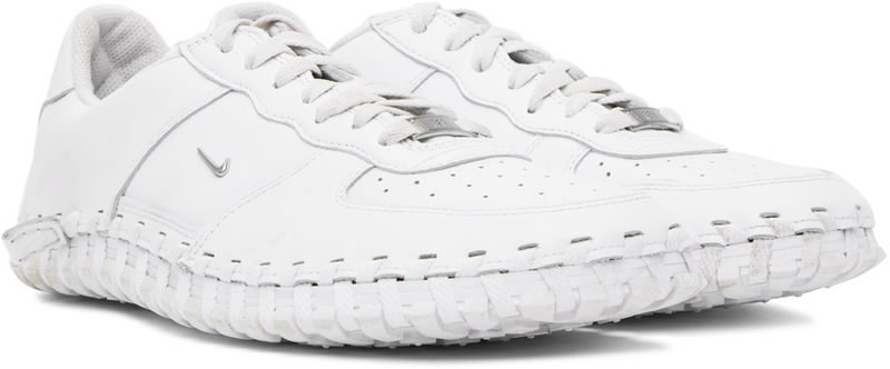 Low-top grained leather sneakers in white. Perforated detailing at toe. Logo hardware a lace-up closure.· Logo patch at tongue. Silver-tone Swoosh hardware at sides. Logo embossed at heel tab.